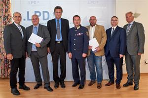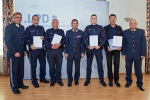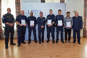 Landespolizeipräsident Dr. Gerhard Pürstl (l.) ehrte Polizistinnen und Polizisten sowie Zivilpersonen. Foto: LPD WienInsgesamt 64 geehrte Bedienstete haben unter anderem Einbruchsserien geklärt, einen Verdächtigen nach Geldwäsche festgenommen und Menschenleben gerettet. Ebenso wurden Führungskräfte geehrt, die durch ihre langjährige Erfahrung und ihren engagierten Einsatz bei Großveranstaltungen jedes Jahr für die Sicherheit hunderttausender Besucherinnen und Besucher, zum Beispiel beim Donauinselfest, sorgen. Unter den Geehrten befanden sich zudem 25 Privatpersonen, durch deren rasches Handeln beispielsweise ein 11-jähriges Kind vor dem Ertrinken gerettet und ein Täter bei der Flucht angehalten werden konnte. Als besondere Erinnerung wurde den geehrten Zivilpersonen das Buch "Sicher durch die Zeit: Die Geschichte der Wiener Polizei" übergeben.