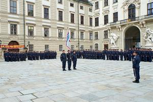 Die feierliche Ausmusterung von neun Grundausbildungs-lehrgängen in Wien. Foto: LPD Wien/Thomas CernyDer Kommandant des Bildungszentrums Wien, Oberst Mag. Christian Wukitsch, begrüßte zahlreiche Ehrengäste, allen voran den Bundesminister für Inneres Dr. Eckart Ratz, in Vertretung des Bürgermeisters der Stadt Wien Landtagsabgeordneten Christian Hursky sowie Landespolizeipräsident Dr. Gerhard Pürstl. Wukitsch bedankte sich bei den Klassenkommandanten und Lehrern der Abschlusslehrgänge für ihre Bemühungen während der zweijährigen Ausbildung - und bei den Absolventinnen und Absolventen für die gezeigten Leistungen bei der Dienstprüfung. Als besonders erfreulich wurde das Erreichen von 53 Auszeichnungen hervorgehoben. In seiner Gratulation betonte Pürstl, dass die Ausbildung das "Fundament für die Tätigkeit als Exekutivbeamter" legt, es aber noch "bedeutend mehr bedarf, um ein guter Polizist und eine gute Polizistin zu werden".