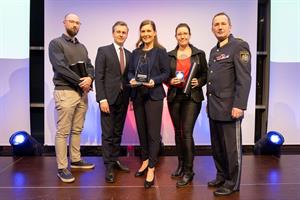 Hochkarätige Gratulationen gab es für die Preisträgerinnen und Preisträger, darunter jene des Projekts "Blackout" in Krisen- und Katastrophenlagen. Foto: LPD Wien / Bernhard Elbe"Was uns als Bank mit der Polizei verbindet, ist das gemeinsame Ziel, ein Höchstmaß an Sicherheit in der Gesellschaft zu gewährleisten. Mit den Sicherheitsverdienstpreisen rücken wir seit 46 Jahren Menschen in den Mittelpunkt, die sich in einem besonderen Ausmaß für die Sicherheit in unserer Stadt eingesetzt haben", betont Martin Hauer, Vorstand der Raiffeisenlandesbank NÖ-Wien. "Sicherheit in unserer Stadt entsteht durch das entschlossene Handeln, die Professionalität und die Hingabe unserer Beamtinnen und Beamten sowie mutiger Bürgerinnen und Bürger. Mit den Sicherheitsverdienstpreisen werden diese herausragenden Leistungen gewürdigt", unterstreicht Landespolizeipräsident Dr. Gerhard Pürstl.