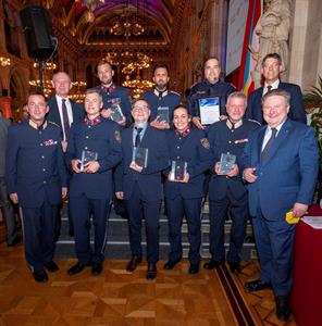 Beim 133er Award geht es um ausgezeichnete Leistungen - auch bei der Hundestaffel. Foto: LPD Wien/Dietmar Gerhartl-SinzingerIn fünf der Kategorien wählte eine Fachjury, bestehend aus Vertreterinnen und Vertretern von Polizei und Politik sowie Bürgerinnen und Bürgern der Stadt Wien, die Gewinnerinnen und Gewinner des diesjährigen 133er Awards. In der Kategorie "Polizist/in des Jahres" wurde der Gewinner durch die Leserinnen und Leser einer renommierten Tageszeitung mittels eines Online-Votings bestimmt. Markus Pohanka moderierte die Veranstaltung, die alljährlich am 13.3. stattfindet und in Kooperation zwischen der Stadt Wien, der Wiener Polizei und dem Echo Medienhaus organisiert wird. Ihren Dank für den tagtäglichen Einsatz der Polizistinnen und Polizisten drückten der Bundesminister für Inneres Mag. Gerhard Karner, der Wiener Bürgermeister Dr. Michael Ludwig, der Landespolizeipräsident in Wien, Dr. Gerhard Pürstl, Landespolizeivizepräsident Dr. Michael Lepuschitz und der Geschäftsführer des Wiener Bezirksblattes, Mag. Thomas Strachota, hervor. Zur Übergabe der begehrten Trophäen wurden die Gewinnerinnen und Gewinner auf die Bühne gebeten; Dankesreden gaben einen Einblick in die vielfältigen beruflichen Lebenswege der Geehrten. Die Polizeimusik Wien umrahmte die festliche Veranstaltung mit schwungvollen Klängen.