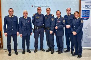 Führungskräfte des BMI und der LPD Wien gratulierten den Kommandanten der Bereitschaftseinheit. Foto: LPD Wien/Thomas CernyNeben ihrer Hauptaufgabe, der Bestreifung des öffentlichen Raumes, insbesondere der öffentlichen Verkehrsmittel und von neuralgischen Punkten, wird die BE im großen Sicherheits- und Ordnungsdienst bei Demonstrationen, bei Sonder- und Schwerpunktaktionen, aber auch bei Hilfs- und Suchaktionen eingesetzt. Oberst Manfred Ihle, Leiter der Bereitschaftseinheit, präsentierte ein eindrucksvolles Zahlenwerk: Es erfolgten in dem Zeitraum 594.449 Personsüberprüfungen, 101.772 Anzeigen (nach dem Strafgesetzbuch, nach verkehrspolizeilichen und verwaltungsrechtlichen Bestimmung etc.), 39.731 Organmandate (entspricht einem Gegenwert von 1.531.193,- Euro), 28.384 Alkovortests, woraus 545 vorläufige Führerscheinabnahmen resultierten sowie 21.504 Festnahmen nach der Strafprozessordnung, nach fremdenrechtlichen und verwaltungsrechtlichen Bestimmungen, aber auch aufgrund nationaler und internationaler Haftbefehle.