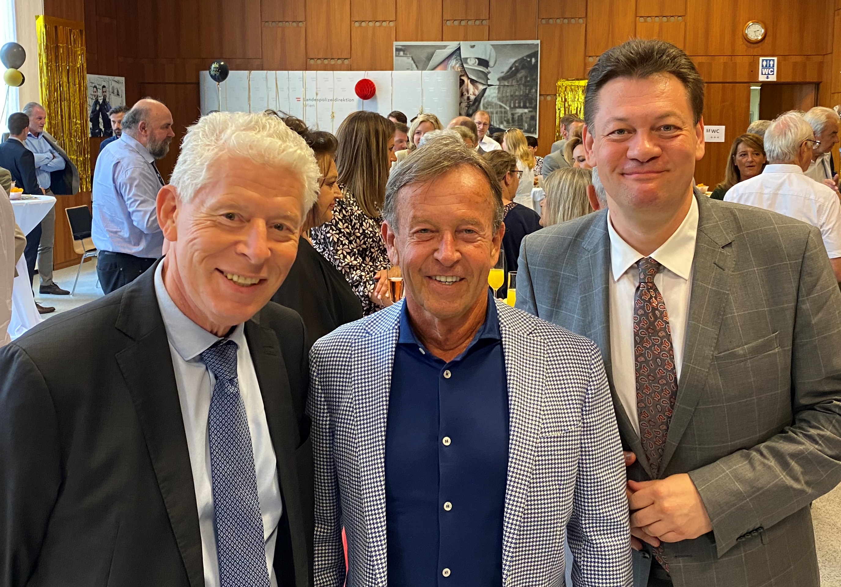 Für die unterhaltsame Regie bei diesem Geburtstagsfest zeichnete der Leiter der Polizeisportvereinigung Wien, Mag. Klaus Schachner, MA, verantwortlich. Unter den Gratulanten gesichtet: Bundespolizeidirektor Generalmajor Michael Takacs, Generaldirektor für die öffentliche Sicherheit Dr. Franz Ruf, M.A., die "Riege" der vormaligen Innenminister Dr. Franz Löschnak, Dr. Wolfgang Peschorn und Mag. Karl Schlögl, sowie vom Verein der Freunde der Wiener Polizei Präsident KR Karl Javurek und sein Funktionsvorgänger Adolf Wala, Rechnungsprüfer und Ex-Polizeipräsident Dr. Peter Stiedl, Generalsekretärin Erika Gramann-Bettstein, MBA und Vorstandsmitglied Mag. Peter Gross. Alle wünschen Dr. Gerhard Pürstl das Allerbeste zu seinem Ehrentag - und eine noch lange andauernde, weiterhin so erfolgreiche Amtszeit!