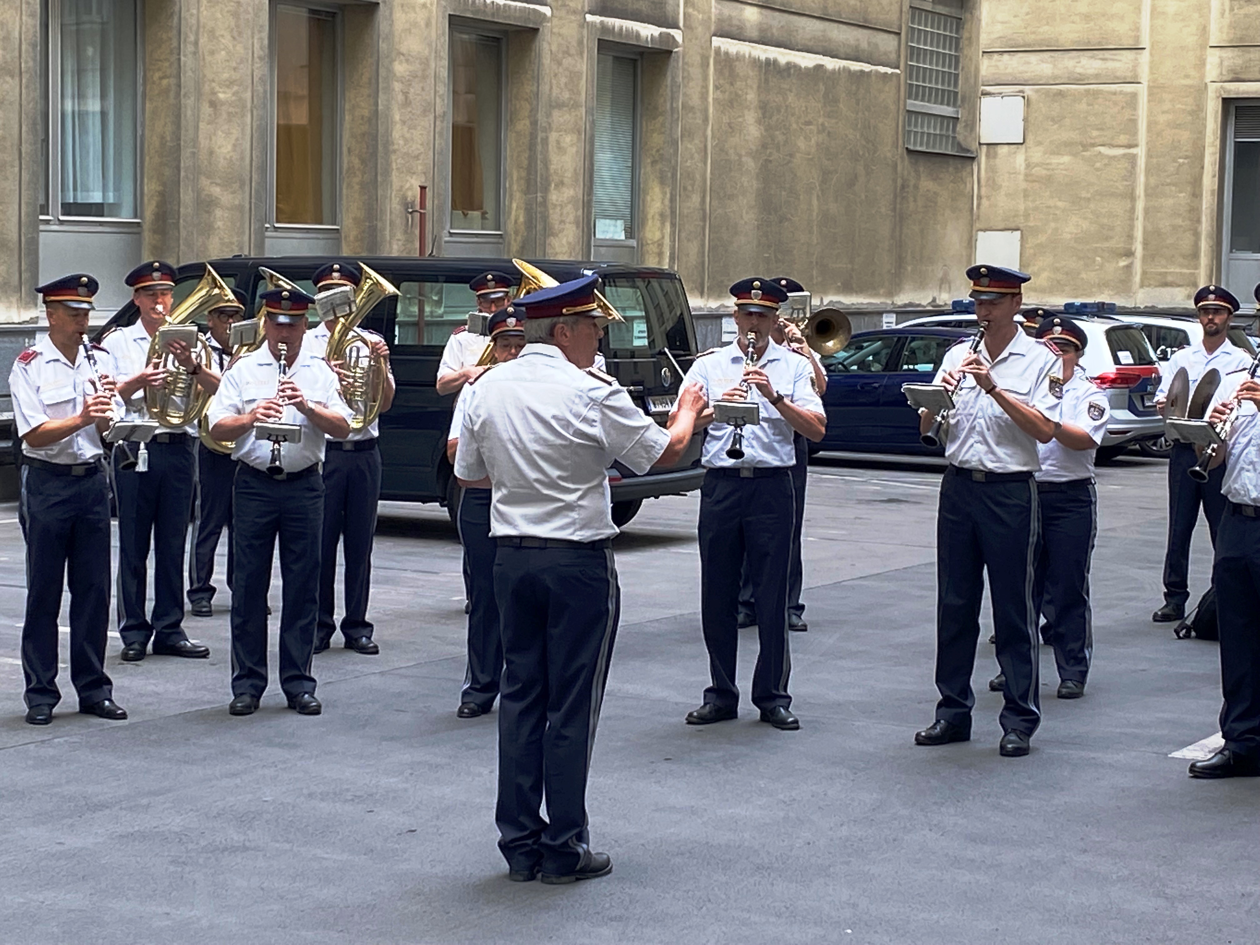 Als besondere Überraschung bat Kapellmeister Herbert Klinger, Dienststellenleiter der Wiener Polizeimusik, zu einem Ständchen im Hof des Amtsgebäudes. Neben "Happy Birthday" mit stimmgewaltiger Unterstützung der Gratulantenschar wurde auch der, eigens für den Präsidenten komponierte "Gerhard Pürstl Marsch" zum Besten gegeben.