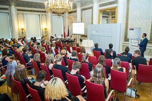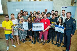 Beim Wettbewerb ging es um gute Ideen für mehr Sicherheit. Foto: LPD Wien/BMIAm 11. Juni 2018 wurden die bundesweiten Gewinner des Ideenwettbewerbs für mehr Sicherheit an Österreichs Schulen durch den Leiter des Bundeskriminalamtes General Franz Lang und die Sicherheitsbotschafterin, Fernsehmoderatorin Dr. Christa Kummer, geehrt. In der Kategorie 5. – 8. Schulstufe konnten die diesjährigen Wiener Landesgewinner der GTEMS (Ganztags Europäische Mittelschule) überzeugen. Mehr als 60 Schüler der Europäischen Mittelschule haben zusammen mit ihren Lehrern ein Foto-Comic-Heft zu Themen wie "falsche Freunde", "erste Liebe", "Gewalt in der Schule", "Mobbing" und "Zivilcourage" gestaltet.
