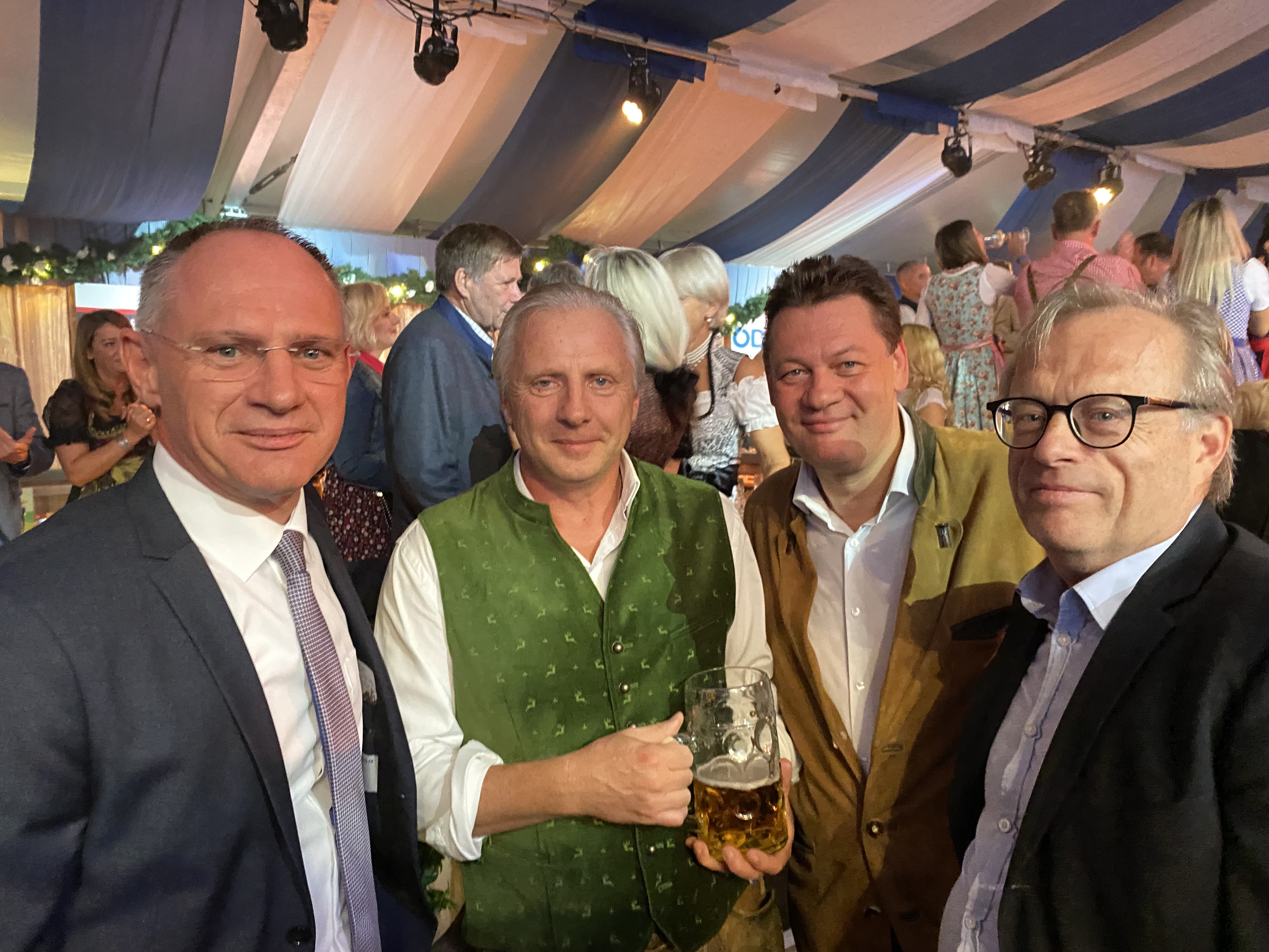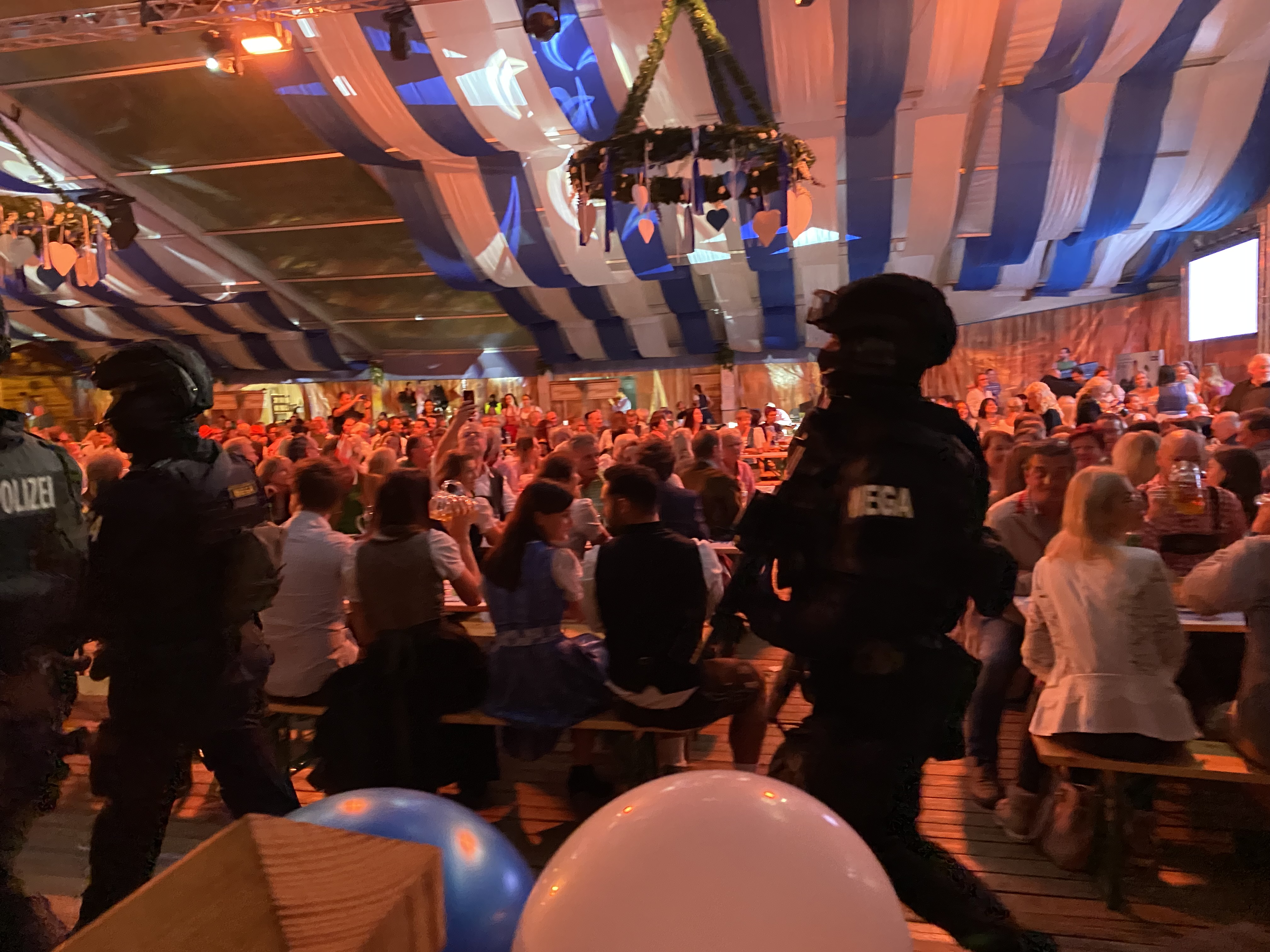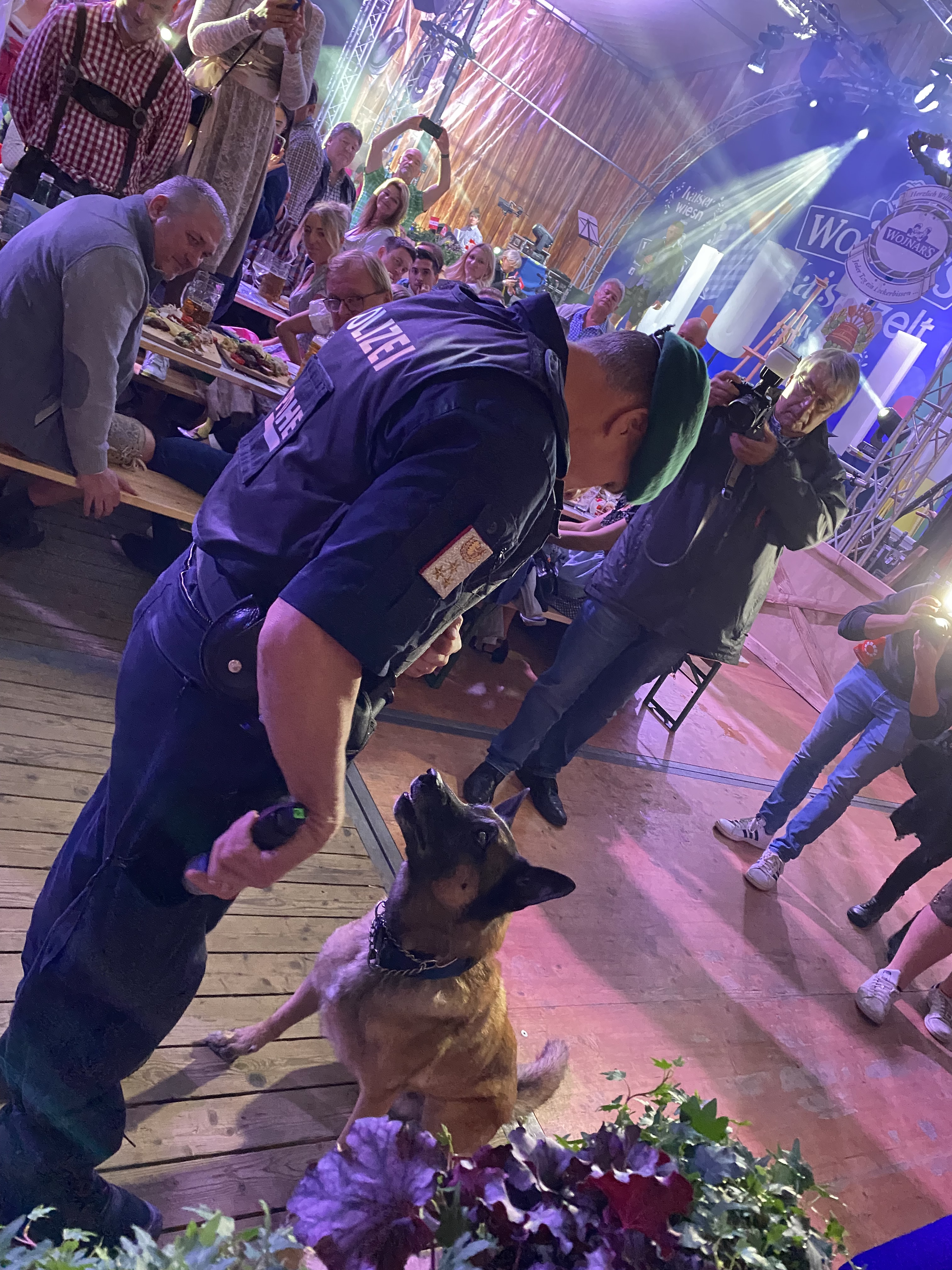 Innenminister Mag. Karner (r.) und Polizeipräsident Dr. Pürstl mit Generalsekretärin Gramann-Bettstein im "Kaiserzelt".Die Kalenderpräsentation wurde für eine Leistungsschau der Wiener Polizei genutzt: Von der Diensthundeeinheit bis zu den Motorradstreifen und der WEGA wurde das breite Spektrum der Polizeiarbeit gezeigt, das sich auch in den zwölf Kalenderbildern wiederspiegelt. Dies ließ sich auch Innenminister Mag. Gerhard Karner nicht entgehen, der seinen Besuch für viele Gespräche mit den Wiener Polizistinnen und Polizisten nutzte. "Ich bin stolz auf die Leistungen der Wiener Polizei", bekräftigte Wiens Landespolizei-präsident Dr. Gerhard Pürstl bei der Veranstaltungseröffnung: "Und gerade weil die Polizistinnen und Polizisten rund um die Uhr für die Sicherheit in Wien sorgen, dürfen sie auch einmal ordentlich feiern!" Zum zweiten Mal, seit es den Polizeikalender gibt, wurden die Bilder nicht von einem Fotografen angefertigt, sondern von den Polizistinnen und Polizisten selbst, die so einen ganz persönlichen Einblick in ihre Arbeitswelt geben. Bei der Präsentation sorgten die "Jungen Zillertaler" und die Polizeimusik Wien unter Kapellmeister Herbert Klinger für schwungvolle Stimmung im Kaiserzelt auf der "Wiener Wies'n". Für den Verein der Freunde der Wiener Polizei begrüßten die Vorstandsmitglieder Mag. Peter Gross und Mag. Wolfgang Hammerer sowie Generalsekretärin Erika Gramann-Bettstein, MBA am Tisch der Polizeifreunde die Gäste Gemeinderat und Sicherheitssprecher LAbg. Christian Hursky sowie Mag. Klaus Schachner (Stadthauptmann Wien 21. und Leiter der Polizei-Sportvereinigung).