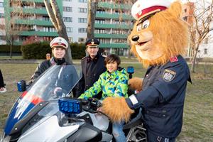 Eine viel bestaunte Polizistin der Landesverkehrsabteilung "verstärkte" auf ihrem Polizeimotorrad die Feierstunde, Polizeibär Tommy machte Späße - und Landespolizeipräsident Dr. Pürstl bewies, dass auch im Freien vorweihnachtliche Freude bereitet werden kann!