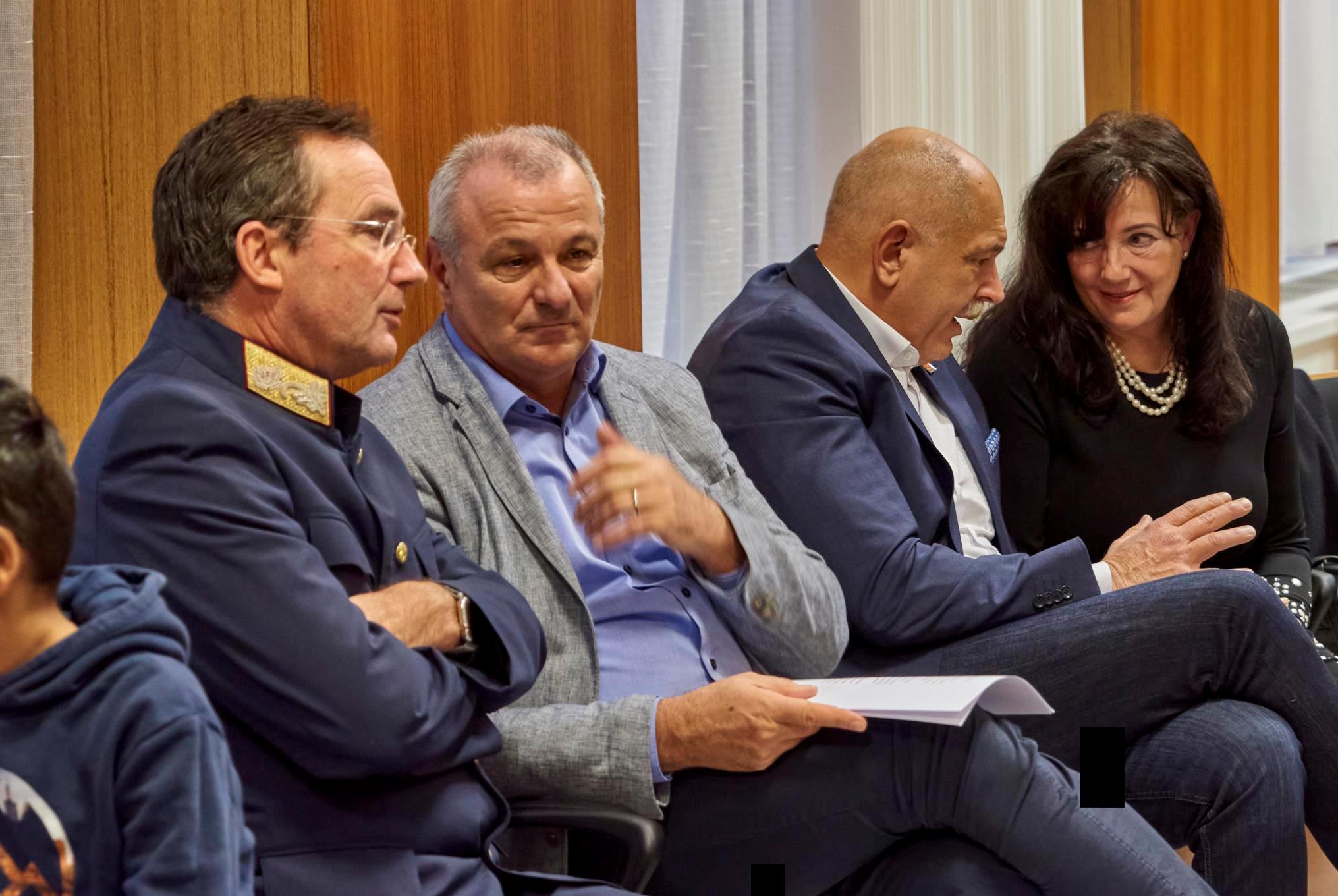 Nach dem Programm wurden Geschenke verteilt und über die Verwendung der Spende gesprochen - unteres Foto v.l.: Landespolizeipräsident Dr. Gerhard Pürstl, Kinderdorf-Leiter Erwin Roßmann, Direktor Dr. Alexander Kiss (ÖWD) und Polizeifreunde-Generalsekretärin Erika Gramann-Bettstein, MBA. Alle Fotos: LPD Wien/Thomas Cerny