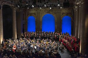 Feinste Klänge der Polizeimusik Wien verwöhnten die Besucher. Foto: LPD Wien/Dietmar Gerhartl-SinzingerIm ausverkauften Theatersaal, der ehemals als großer Saal der Börse für landwirtschaftliche Produkte benutzt wurde, präsentierten die musikalischen Polizistinnen und Polizisten die Stücke "Slawischer Tanz Nr. 1" von Antonin Dvorak und "Carmina Burana" von Carl Orff. Die Lied- und Dramentexte des Werkes "Carmina Burana", die vor mehr als 200 Jahren in einem Kloster in Bayern gefunden worden waren, wurden von der Sopranistin Ursula Langmayr, dem Tenor Alexander Kaimbacher, dem Bariton Klemens Sandner und den beiden Chören Allegro Vivace und den Young HIB-Voices dargebracht. Neben den zahlreichen Besuchern lauschten auch BMI-Generalsekretär Mag. Peter Goldgruber, Landtagsabgeordneter Christian Hursky, die Landespolizeivizepräsidenten Mag. Franz Eigner und Dr. Michael Lepuschitz, MA sowie weitere Ehrengäste der musikalischen Darbietung. Der Verein der Freunde der Wiener Polizei war durch Generalsekretär Heinz Gehl vertreten.