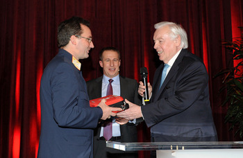 2013 übergab der Präsident des Vereins der Freunde der Wiener Polizei, Adolf Wala (r.), insgesamt 56 Defibrillatoren für Polizeifahrzeuge und -dienststellen an Wiens Landespolizeipräsident Dr. Gerhard Pürstl (l.).