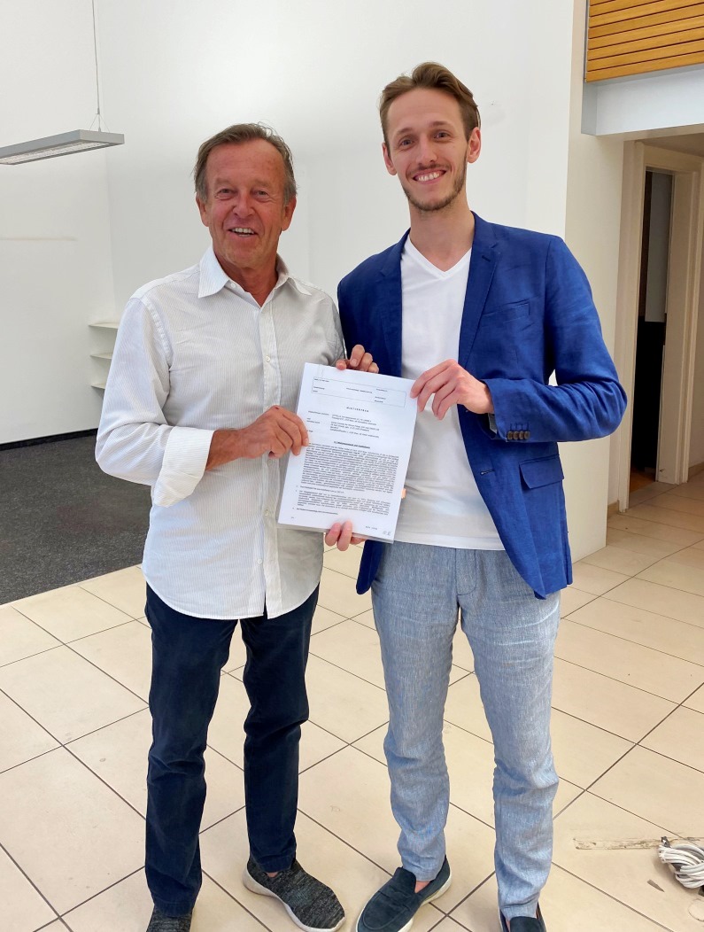 Nach Erledigung aller mit der Förderung, Immobiliensuche und Anmietung verbundenen Administration konnte Vereinspräsident KR Karl Javurek (im Foto mit ÖRAG-Betreuer Stefan Braune, r.) am 10. Juli 2023 den Mietvertrag für die von der LPD Wien ausgewählte Immobilie unterschreiben. Gleichzeitig wurde im Beisein von Landespolizeipräsident Pürstl eine Prekariatsvereinbarung geschlossen, derzufolge die ausschließliche Nutzung des vom Verein angemieteten Lokals der Wiener Polizei übertragen wird. Für die entsprechende Versicherung des Objekts fand Vereinsvorstand Dr. Franz Kosyna bei der Wiener Städtischen/VIG die optimale Lösung.