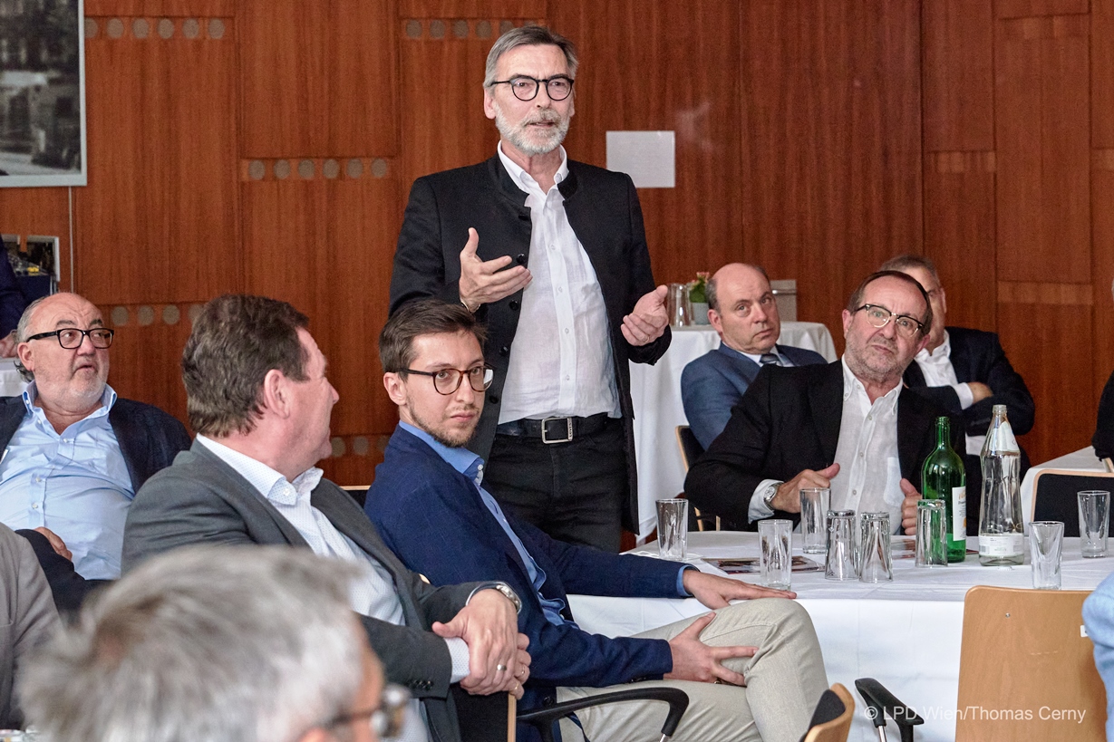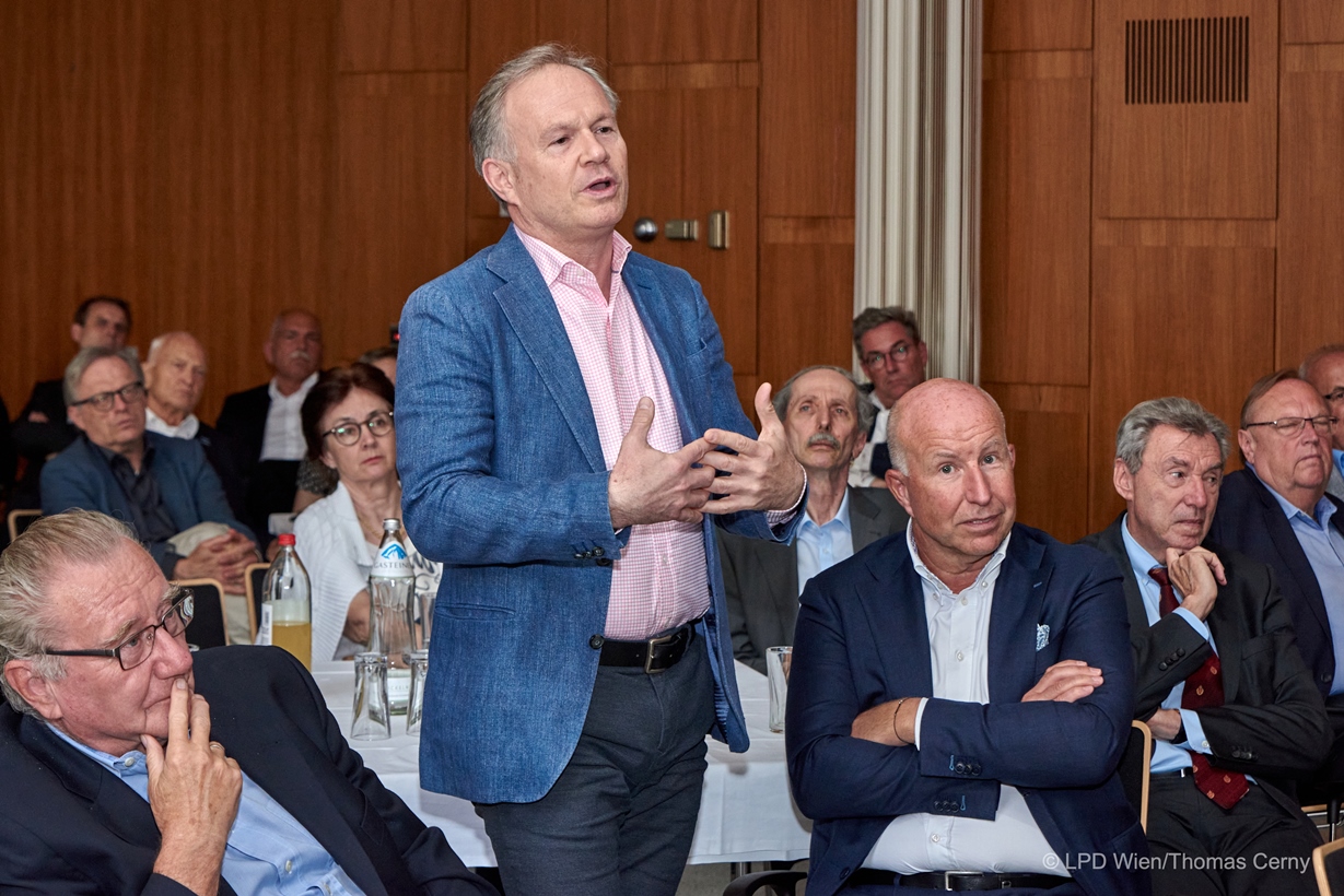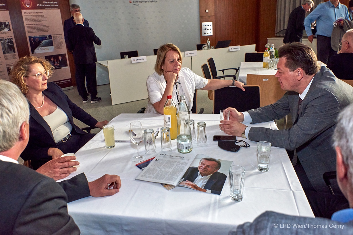 Gäste nützten die Zeit nach dem Referat für eine angeregte Diskussion mit dem Referenten - und zum Abschluss bei einem kleinen Buffetempfang auch für Networking und vor allem für den lange vermissten persönlichen Austausch. Der Verein der Freunde der Wiener Polizei dankt Generaldirektor KR Mag. Starsich dafür, dass er sich für den interessanten Vortrag zur Verfügung gestellt hatte und allen einen informativen Abend gestaltete!