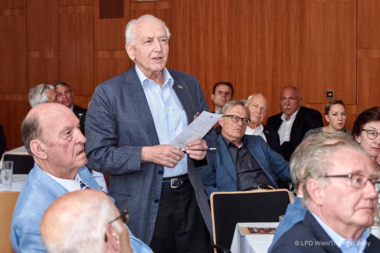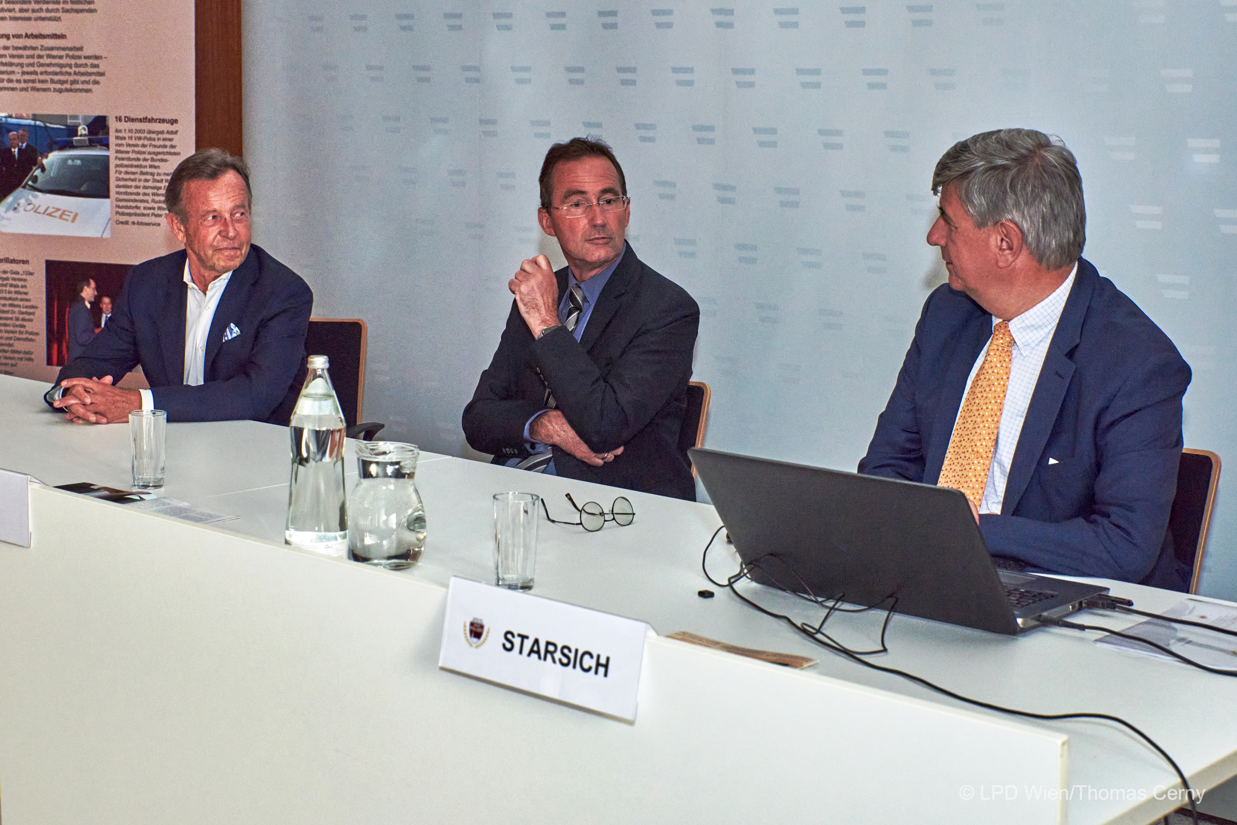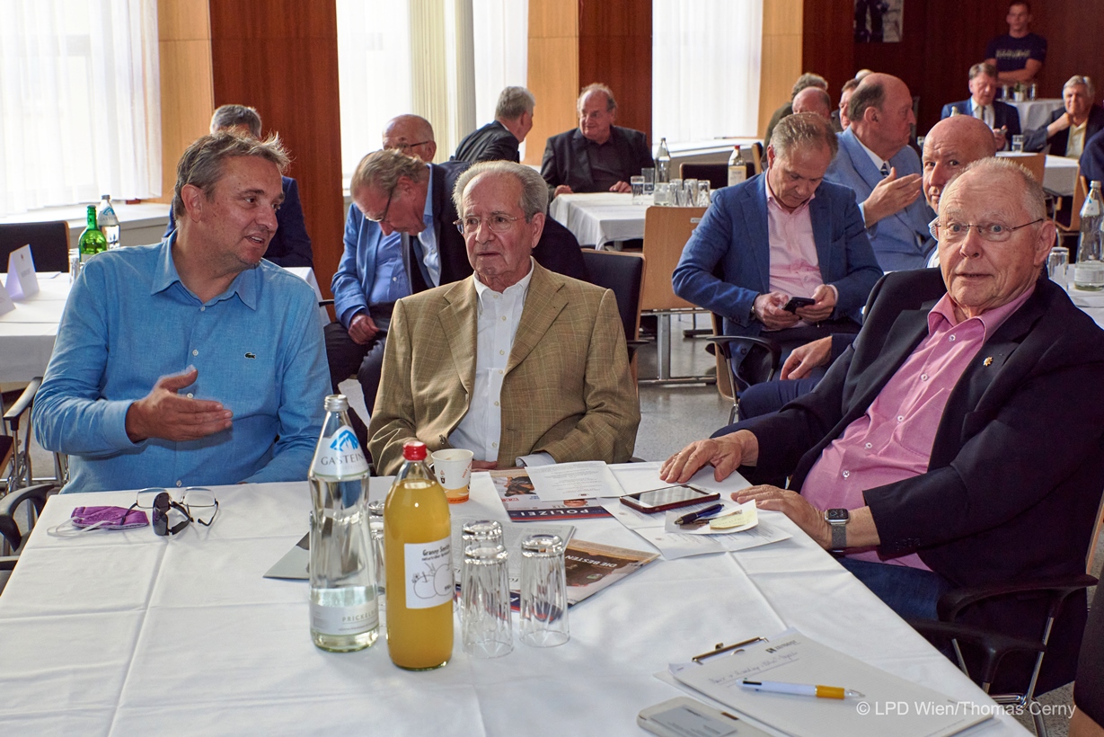 KR Karl Javurek, KR Mag. Gerhard Starsich, Polizeipräsident Mag. Dr. Gerhard Pürstl und HR Mag. Manfred Reinthaler (v. l.)In seinen Begrüßungsworten stellte Vereinspräsident KR Karl Javurek auch die neuen Vorstandsmitglieder Erika Gramann-Bettstein, MBA (Generalsekretärin/Schriftführerin), Mag. Peter Gross und Mag. Wolfgang Hammerer (Kassier) vor. Den Anlass nützte Javurek darüber hinaus, um sich bei den langjährigen ehemaligen Vorstandsmitgliedern KR Helmut Nahlik und HR Dr. Walter Schubert für ihre engagierte Arbeit für den Verein herzlich zu bedanken. Dem vormaligen Vereinspräsidenten Adolf Wala gratulierte Javurek namens des Vereins zu dessen 85. Geburtstag, den Wala am Veranstaltungsabend im Kreise seiner Familie feierte.