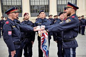 Im Rahgmen des Festaktes kam auch der Fahnentrupp der Landespolizeidirektion Wien zum Einsatz. Foto: LPD Wien / Gilbert Brandl