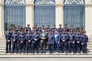 Sechs Lehrgänge freuten sich über erfolgreichen Abschluss des DienstführendenkursesInnenminister Karner, Landespolizeipräsident Pürstl und der Kommandant des SIAK-Bildungszentrums Wien Wolfgang Lang beim Abschreiten der Front. Foto: LPD Wien / Thomas Cerny