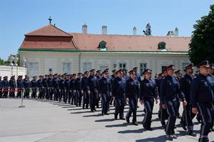 "Es ist ein guter Tag für die Sicherheit in dieser Stadt. Ich freue mich über die vielen Gäste, die heute ihre Verbundenheit zur Wiener Polizei zum Ausdruck bringen", betonte Innenminister Mag. Gerhard Karner am 2. Juni 2023 vor den mehr als 200 neuen dienstführenden Polizistinnen und Polizisten: "Das unterstreicht, dass die Kolleginnen und Kollegen gute und vertrauensvolle Arbeit leisten!" Der Festakt aus Anlass der Ausmusterung im Wiener Belvedere wurde durch das Orchester der Polizeimusik Wien unter der Leitung von Kapellmeister Herbert Klinger begleitet. Den Polizistinnen und Polizisten gratulierten auch Landtagsabgeordneter Christian Hursky in Vertretung des Wiener Bürgermeisters und der Landespolizeipräsident in Wien, Dr. Gerhard Pürstl.