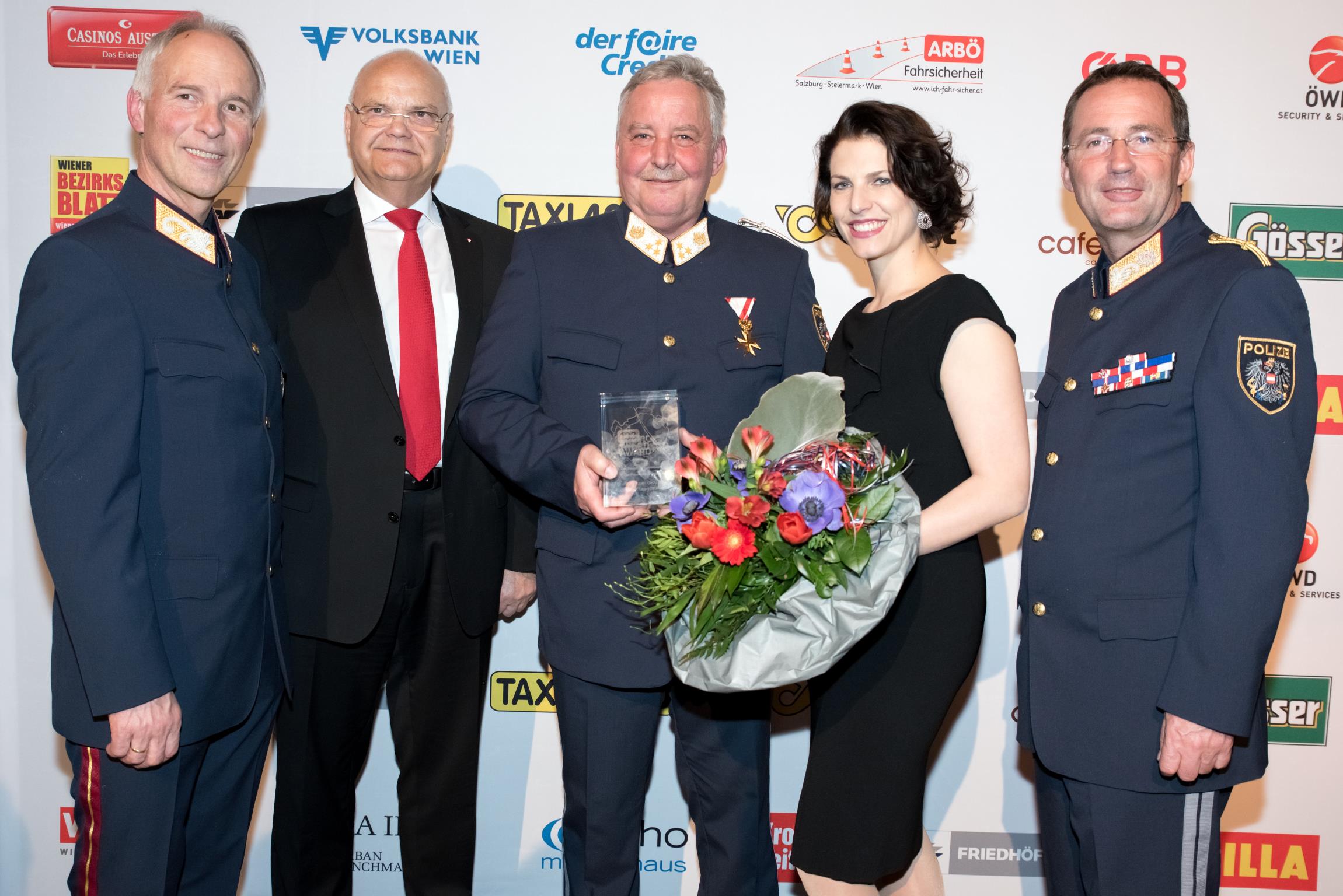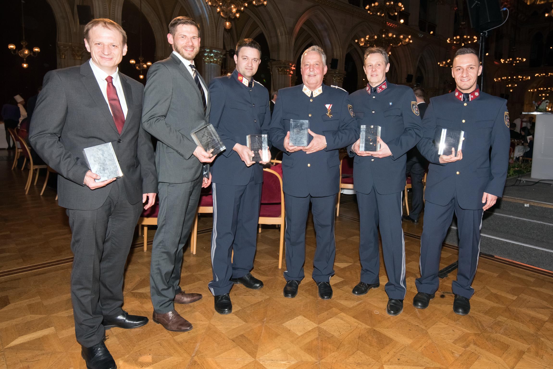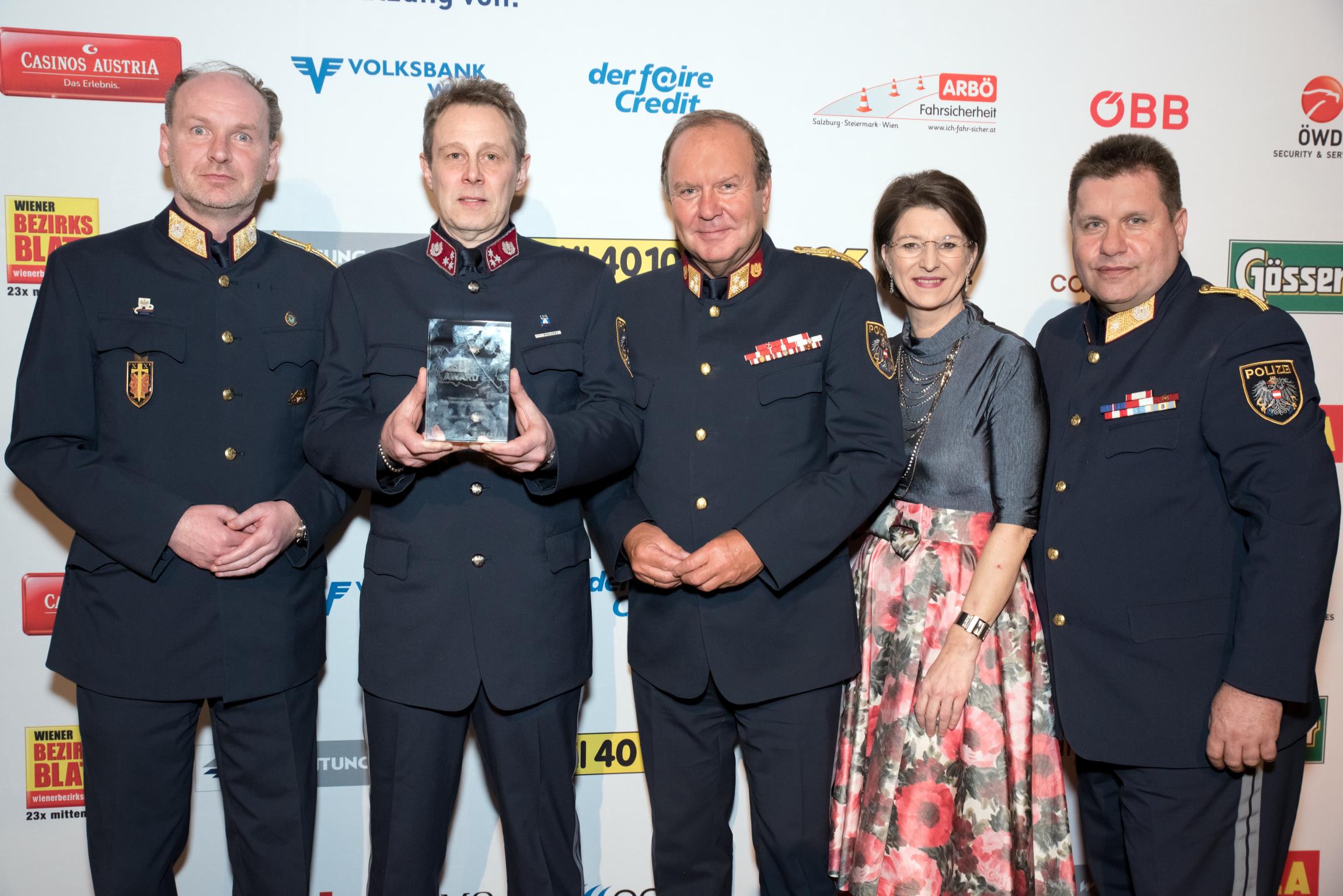 Ihre Wertschätzung für die herausragende Arbeit drückten die Award-Übergeber Staatssekretärin Mag. Karoline Edtstadler, Generalsekretär Mag. Peter Goldgruber, Präsident des Wr. Landtages Prof. Harry Kopietz, Landespolizeipräsident Dr. Gerhard Pürstl und Generalmajor Karlheinz Dudek aus.