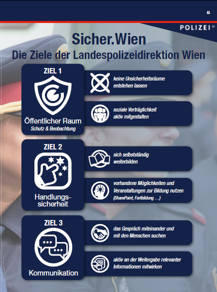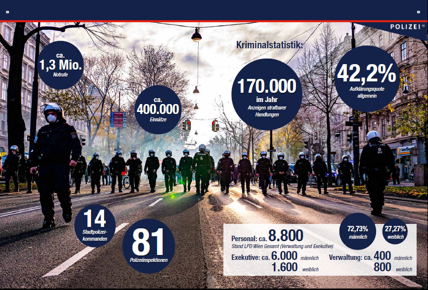 42 Seiten, dicht gefüllt mit Informationen über die unterschiedlichen Ziele, Fakten, Abteilungen und Aufgabenbereiche der Wiener Polizei: Das ist die neue Imagebroschüre "Polizei: Sicherheit in Wien" der Landespolizeidirektion Wien. Einblick gegeben wird auch in die verschiedenen Uniformen und ihre Bedeutung sowie in die verfügbare Fahrzeugflotte und vieles mehr. Die Produktion der Broschüre wurde vom Verein der Freunde der Wiener Polizei finanziell gefördert und kann hier angesehen werden. Erhältlich ist sie für Interessierte bei der LPD Wien, Abteilung Öffentlichkeitsarbeit, Tel.: 01/313 10 DW 72133 oder E-Mail: LPD-W-Oeffentlichkeitsarbeit(at)polizei.gv.at