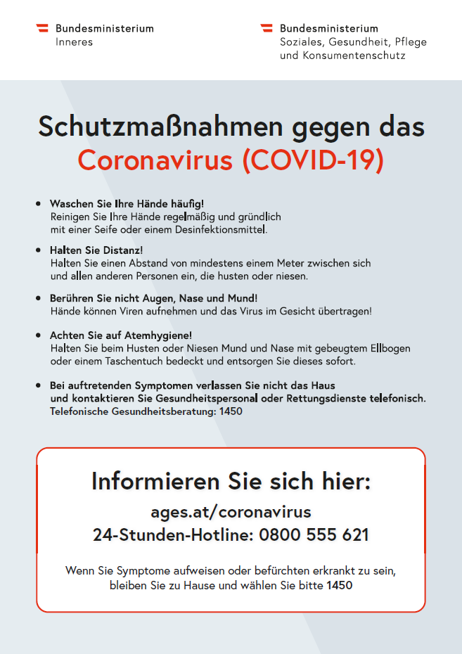 Seit 11. März 2020 wurden vorübergehende Grenzkontrollen an den Binnengrenzen zu Italien eingeführt. Der Schienen- und Luftverkehr aus Italien nach Österreich wurde eingestellt. Davon ausgenommen sind der Güter- und der gewerbliche Verkehr sowie der Pendler-Berufsverkehr. Bei der Einreise aus Italien muss ein ärztliches Zeugnis vorgewiesen werden, das eine negative Testung auf den Corona-Virus SARS-CoV-2 bestätigt. Dieses darf nicht älter als vier Tage sein. Kann dies nicht vorgelegt werden, wird die Einreise verweigert. Personen, die österreichische Staatsbürger sind oder ihren Haupt- bzw. Nebenwohnsitz oder gewöhnlichen Aufenthalt in Österreich haben, ist erlaubt einzureisen, sofern sie sich verpflichten, unverzüglich eine 14-tägige selbstüberwachte Heimquarantäne anzutreten. Die Durchreise durch Österreich ist ohne Zwischenstopp erlaubt, sofern die Ausreise sichergestellt ist. Zusätzlich gibt es ab Montag, dem 16. März 2020 auch Flugverbote für die Länder Frankreich, Spanien und Schweiz.