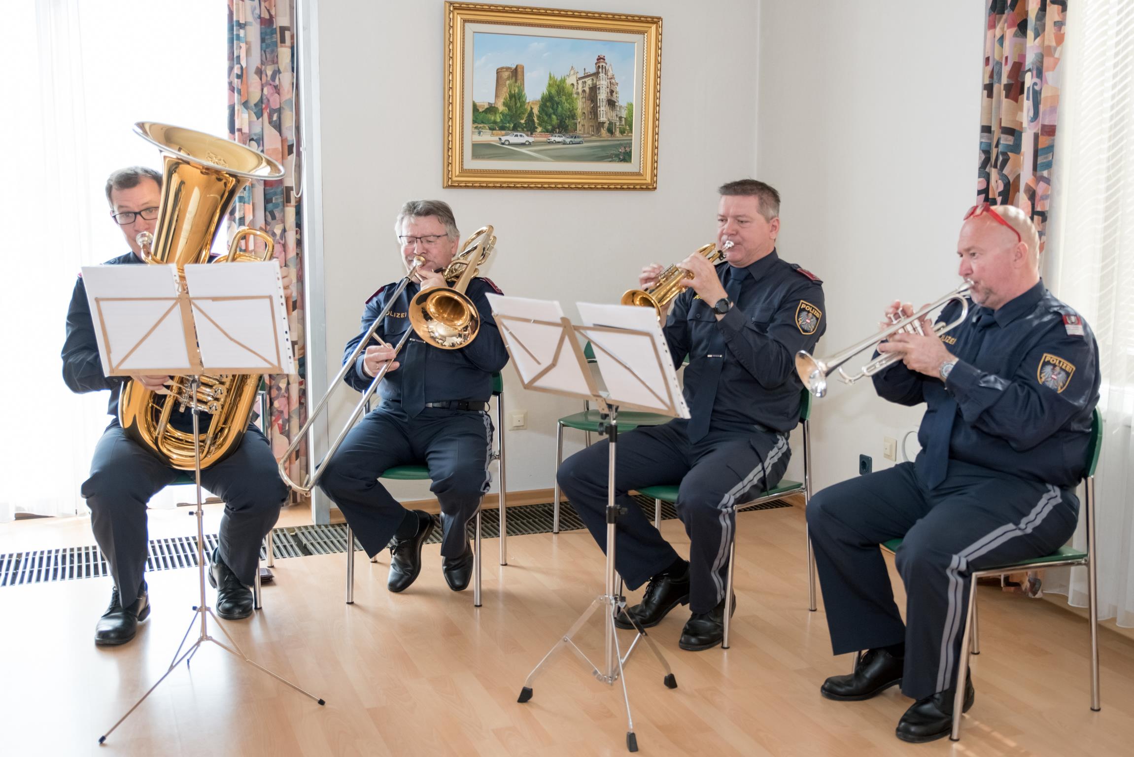 Landespolizeivizepräsident Dr. Michael Lepuschitz ehrte verdienstvolle Menschen. Foto: LPD Wien/Bernhard ElbeNach der musikalischen Eröffnung durch die Polizeimusik Wien und der einleitenden Moderation durch Oberstleutnant Mag. Rudolf Haas, BA begrüßte Landespolizeivizepräsident Dr. Michael Lepuschitz die am 23. April 2018 für ihre Leistungen geehrten Personen. Die mit 13 Amtshandlungen ungewöhnlich hohe Anzahl an auszuzeichnenden Aktionen zeige die ganze Bandbreite der polizeilichen Handlungen. Lepuschitz betonte den großen Stolz auf die gute Zusammenarbeit unter den Kolleginnen und Kollegen, aber auch die hohe Aufmerksamkeit und das Engagement der Privatpersonen. "Ich bin stolz, zu dieser Polizei zu gehören", so Lepuschitz.