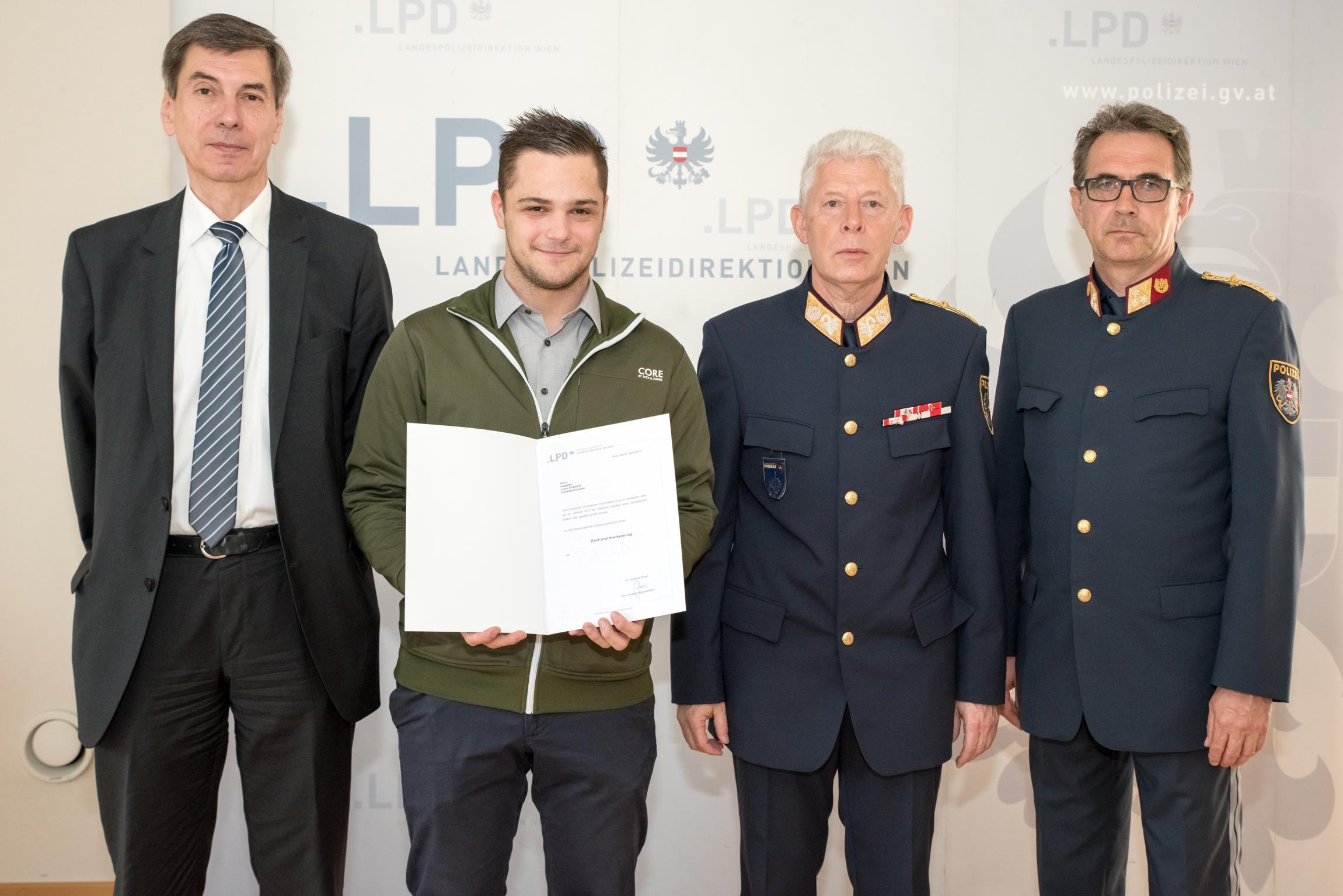 Schließlich wurde ein Angehöriger des Militärkommandos Wien geehrt, der die Polizei immer wieder tatkräftig bei Veranstaltungen unterstützt.