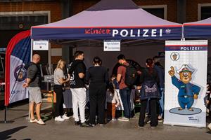 Ein buntes Bild der Wiener PolizeiInnenminister Mag. Gerhard Karner ließ es sich nicht nehmen, zum Tag der Wiener Polizei zu kommen. Foto: LPD Wien / Alexander Michalek