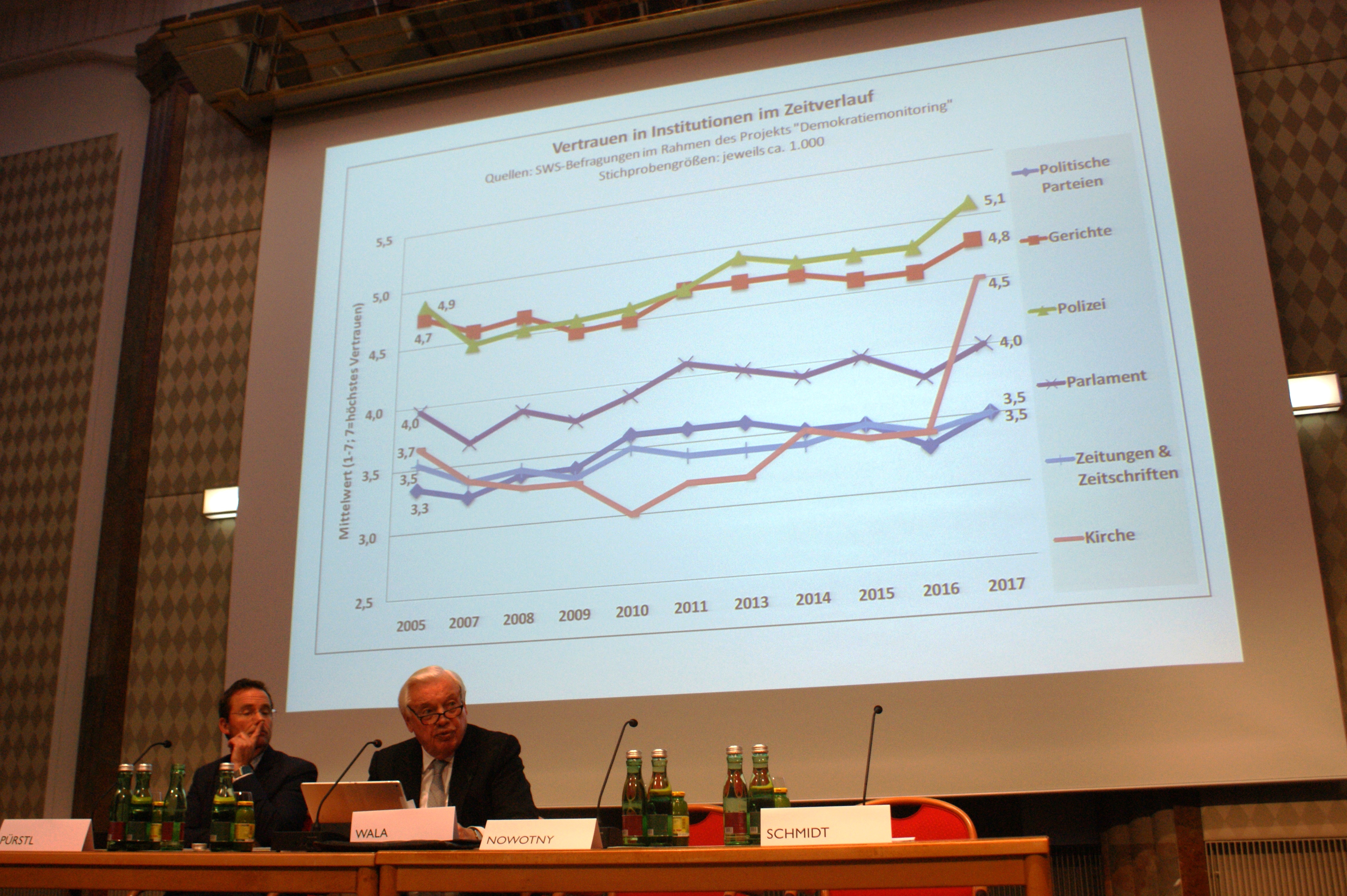 Dass sich die erfolgreiche Polizeiarbeit auch auf das Image in der Bevölkerung auswirkt, erklärte der Präsident des Vereins der Freunde der Wiener Polizei, Adolf Wala, unter Verweis auf das Demokratiemonitoring der Sozialwissenschaftlichen Studiengesellschaft: „Aus dieser regelmäßig durchgeführten Erhebung geht zum wiederholten Mal hervor, dass die Polizei unter allen anderen öffentlichen Behörden und Institutionen das höchste Maß an Vertrauen in der Bevölkerung genießt.“ Zu diesem Erfolg sei der Polizei zu gratulieren, so Wala, der sich erfreut zeigte, dass "der Verein durch seine vielfältigen Unterstützungsleistungen im Einvernehmen mit dem Bundesministerium für Inneres und in Abstimmung mit dem Wiener Polizeipräsidenten auch etwas dazu beiträgt“.