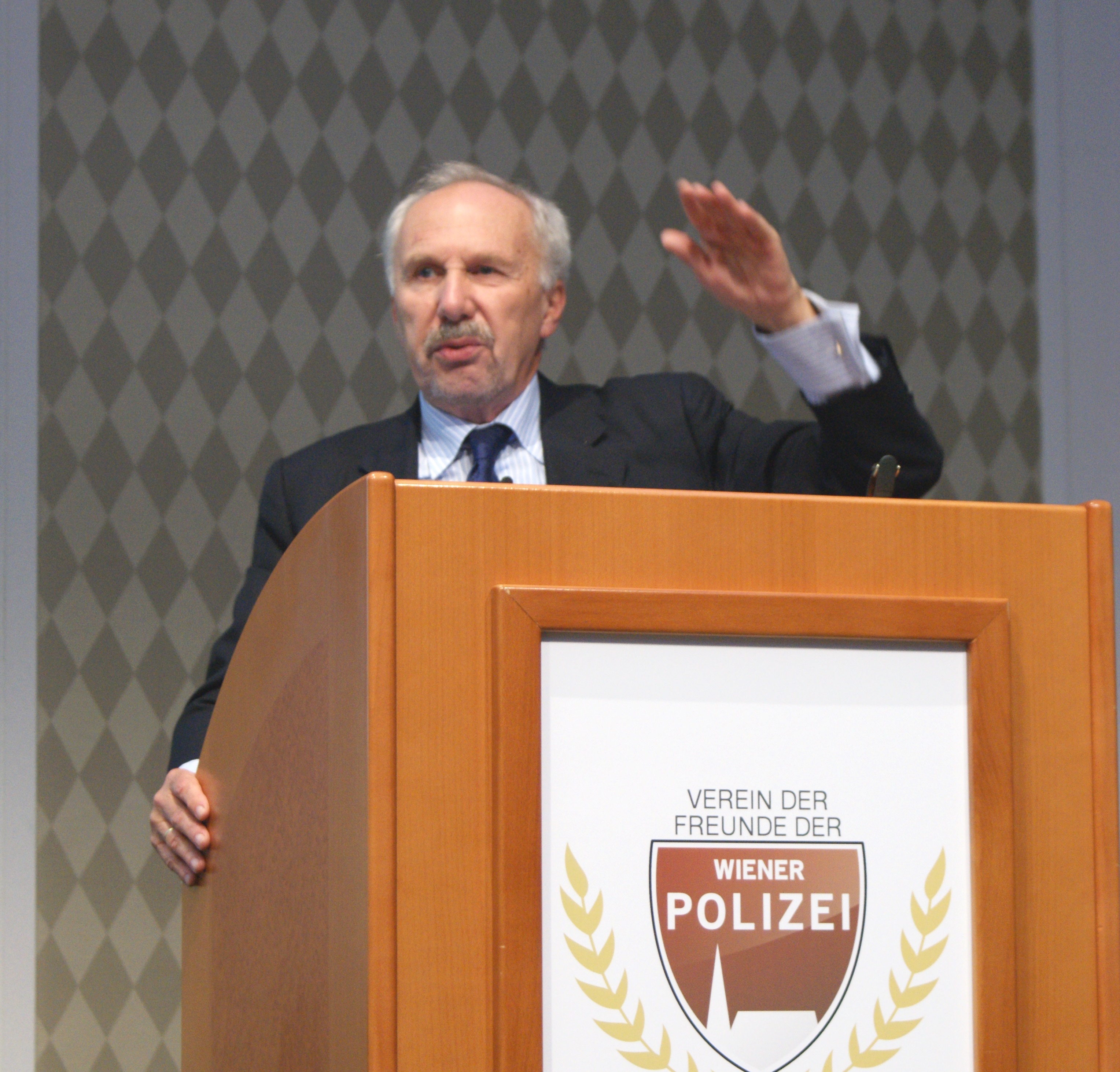 Es waren durchwegs positive Botschaften, die Wiens Polizeipräsident Dr. Gerhard Pürstl, OeNB-Gouverneur Univ.-Prof. Dr. Ewald Nowotny und Mag. Paul Schmidt, Generalsekretär der Österreichischen Gesellschaft für Europapolitik, überbrachten. Die drei hochrangigen Experten waren auf Einladung des Vereins der Freunde der Wiener Polizei im historischen Ambiente des Kassensaals der Oesterreichischen Nationalbank zusammengekommen, um vor knapp 150 Gästen über ihren jeweiligen Bereich – Sicherheit, Weltwirtschaft und Geldpolitik sowie die Europäische Union – zu referieren.