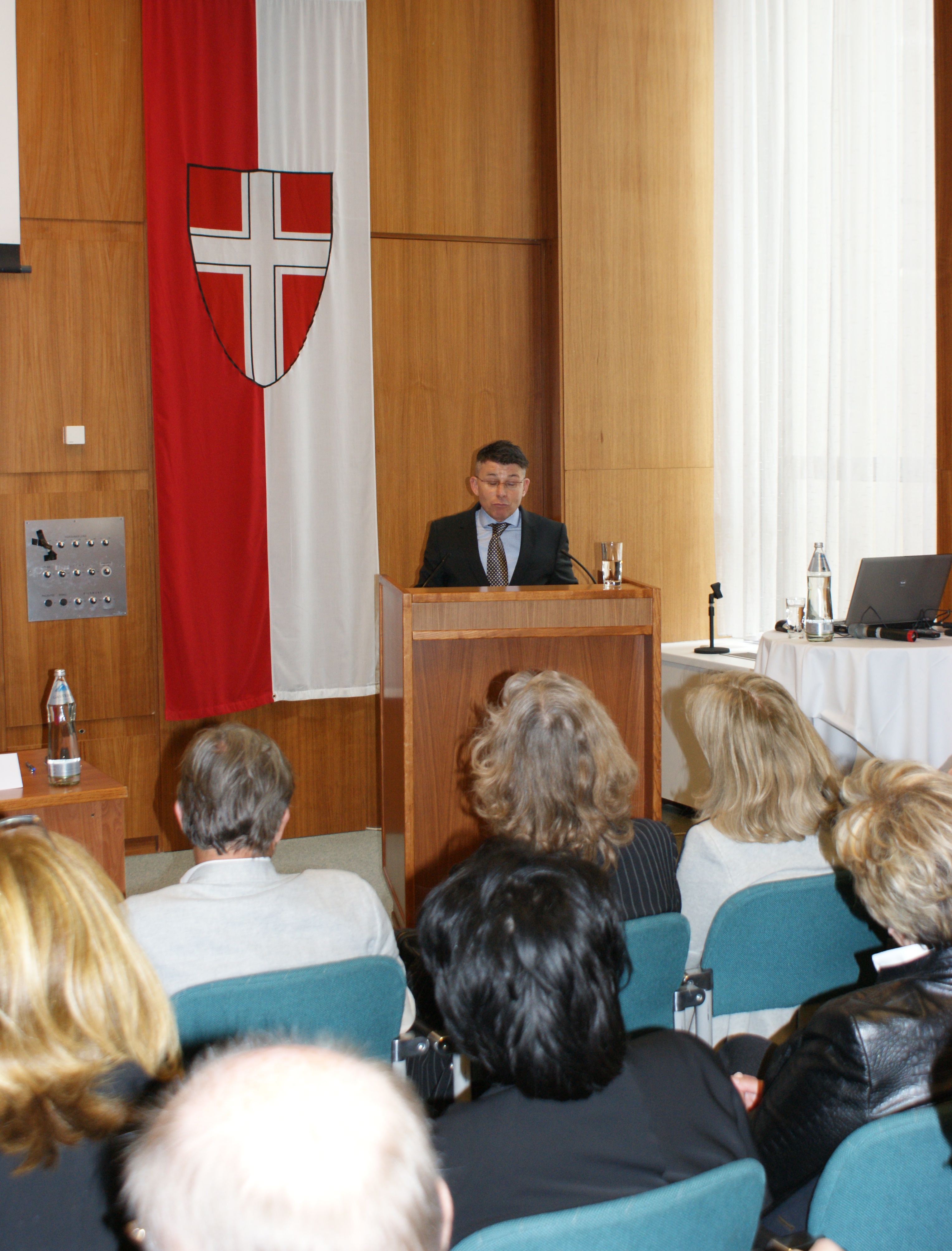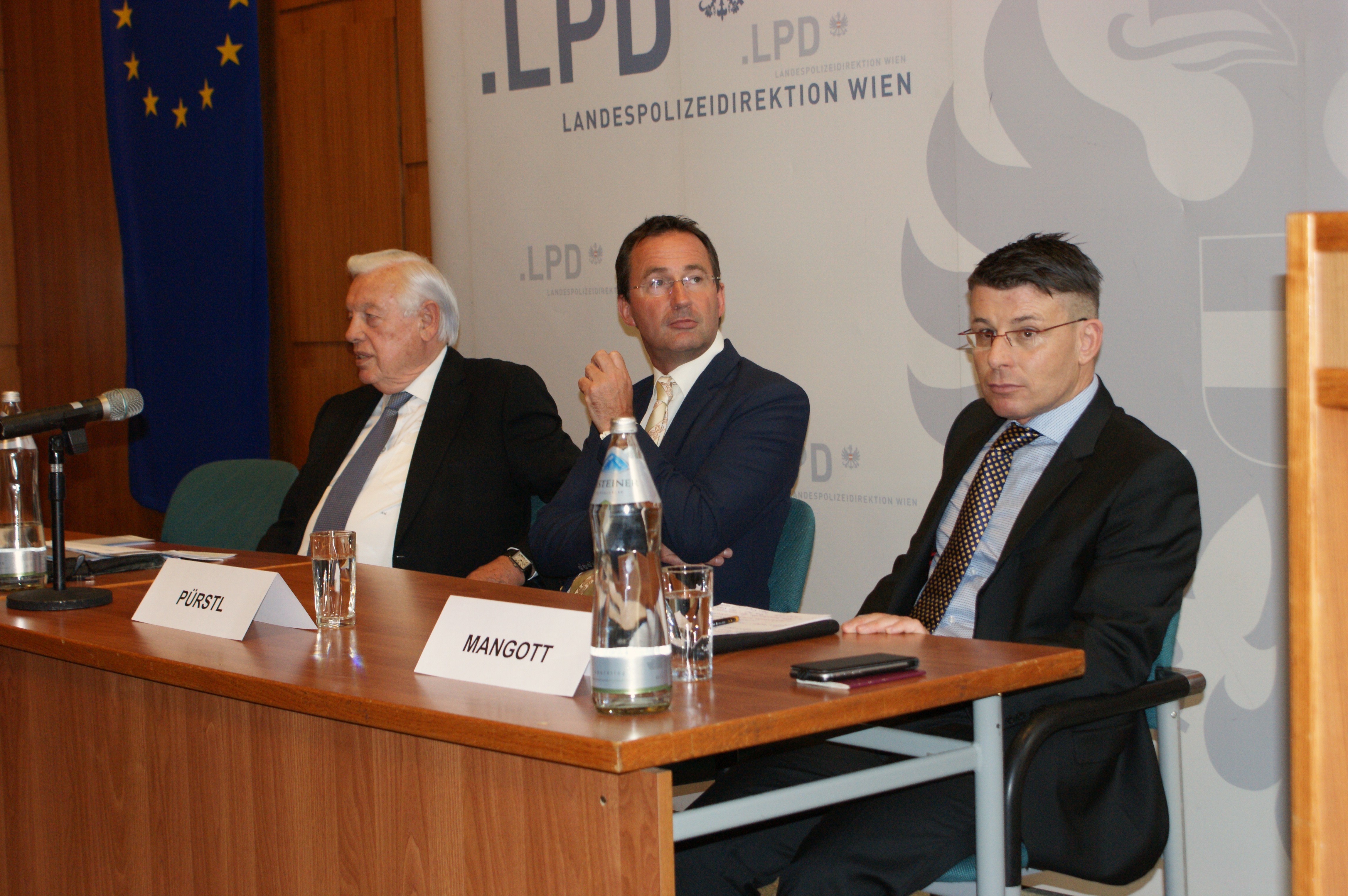 9. Mai 2017 in der Landespolizei-direktion Wien. Geladen hatten der Wiener Polizeipräsident und der Verein der Freunde der Wiener Polizei, gekommen waren rund 70 Gäste aus Wirtschaft, Politik und Polizei. Moderator Oberst Johann Golob von der Polizei-Öffentlichkeitsarbeit freute sich in seiner Begrüßung besonders über die Anwesenheit der ehemaligen Wiener Polizeipräsidenten Dr. Peter Stiedl und Dr. Günther Bögl sowie des seit 1. Mai 2017 neu bestellten Vizepräsidenten der LPD Wien, Mag. Franz Eigner.